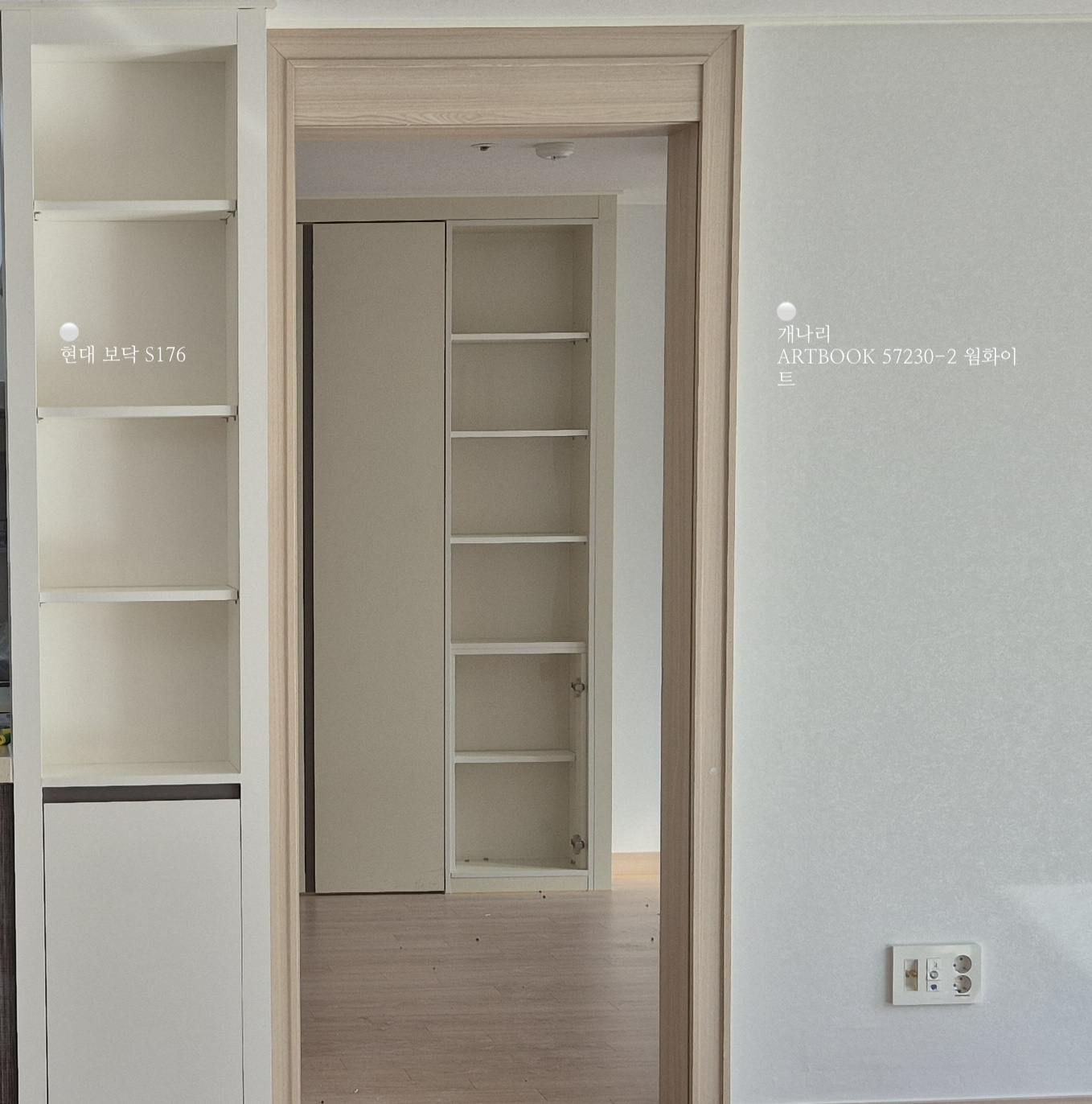 이번엔 제가 직접 매장에 가서 눈으로 보고 고를 수 있는 시간이 부족해 최대한 웜화이트와 이질감 없는 시트지를 찾기 위해 많은 검색과 고민 끝에 현대 보닥 S176으로 결정하고 시공하기로 했습니다.